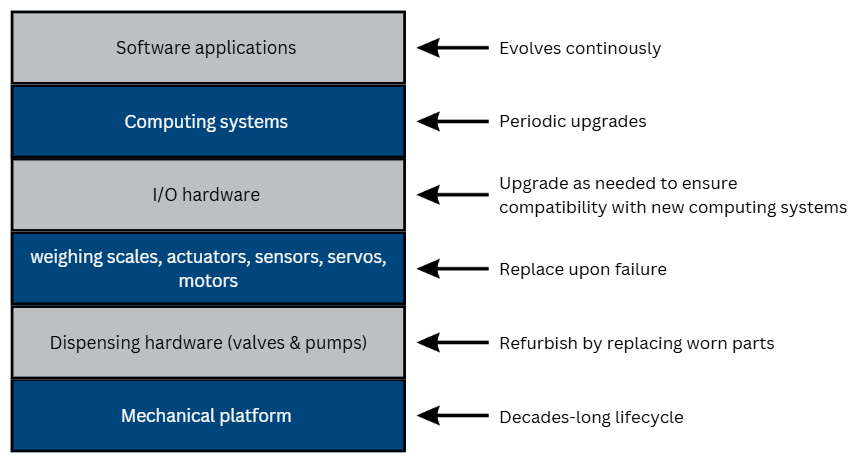Many industrial systems remain mechanically sound for decades. The real challenge is rarely the frame or the dispensing hardware, but the shorter‑lifecycle modules around computing, controls and software.